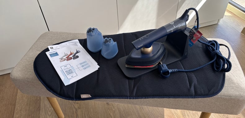 Lorsque vous achetez le Philips OneTurn, vous disposez de tout le nécessaire pour commencer immédiatement. La boîte comprend un tapis de repassage pliable, qui permet de repasser sur presque toutes les surfaces sans protection supplémentaire. Pratique si vous ne souhaitez pas de planche à repasser fixe.