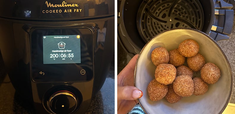 De CookeoInfinity is niet alleen een multicooker, hij is een echte alleskunner. Tijdens een gezellig avondje met vrienden besloot ik de airfryer-stand te testen, ideaal voor snelle snacks. Ik koos de handmatige instelling en bakte bitterballen op de tijd en temperatuur die werden aangegeven op het doosje. Het resultaat? Perfect krokant, zonder gedoe en zonder vet. Terwijl wij gezellig bijpraatten, deed de Cookeo het werk. Dit bewijst hoe veelzijdig het toestel is: van stoofpot tot frituren, alles in één toestel.